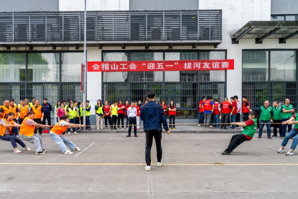 4月26日下午,會稽山工會2025年“迎五一”拔河友誼賽在公司投醪路上火熱開賽。比賽分為男、女兩組,來自行政、營銷、釀造、灌裝四個分工會的80名參賽隊組成八支隊伍同場競技。